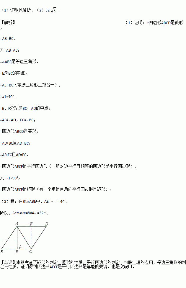 如图,已知菱形ABCD,AB=AC,点E,F分别是BC,AD的中点,连接AE,CF.