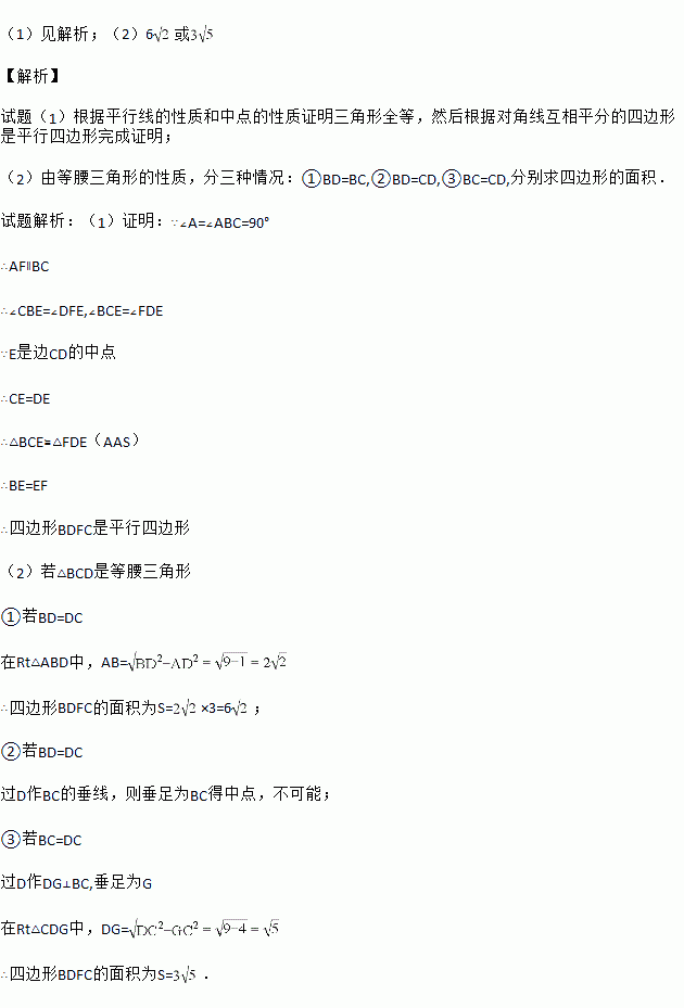 (2)若△BCD是等腰三角形,求四边形BDFC的面积.