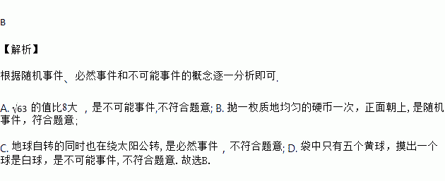 C. 地球自转的同时也在绕太阳公转 D. 袋中只有五个黄球,摸出一个球是白球