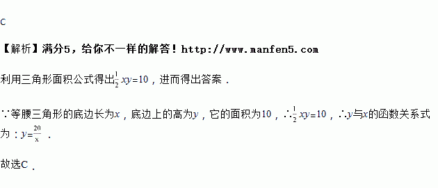 如果等腰三角形的底边长为,底边上的高为,它的面积为时,则与的函数关系式为( )