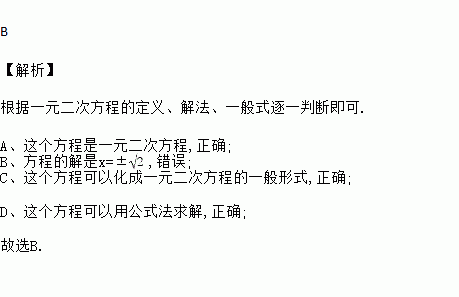 A. 这个方程是一元二次方程