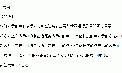 数轴上与表示的点距离5个单位长度的点所表示的数是 _______ .