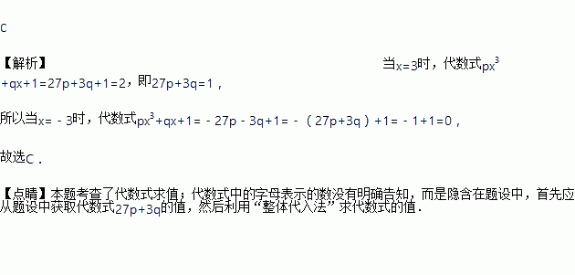 当x=3时,代数式px3+qx+1的值为2,则当x=﹣3时,px3+qx+1的值是( )