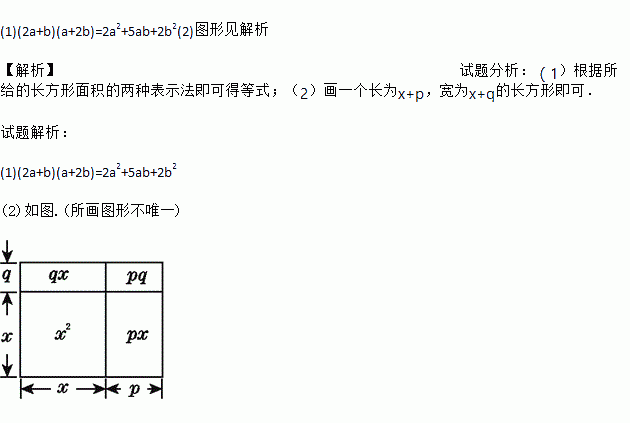 (2)已知等式:(x+p)(x+q)=x2+(p+q)x+pq,请你画出一个相应的几何图形加以说明.