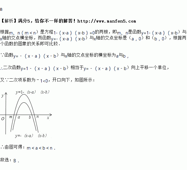 已知二次函数y=﹣(x﹣a)(x﹣b),其中a<b,m、n(m<n)是方程1﹣(x﹣a)(x﹣b)=0的两个根,则实数a、b、m、n的大小关系是( )
