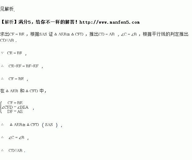 如图,点C,F,E,B在一条直线上,∠CFD=∠BEA,CE=BF,DF=AE,