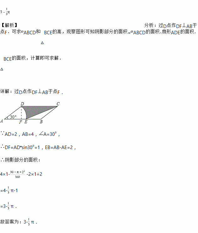 ,以点A为圆心,AD的长为半径画弧交AB于点E,连接CE,则阴影部分的面积是______结果保留![]()