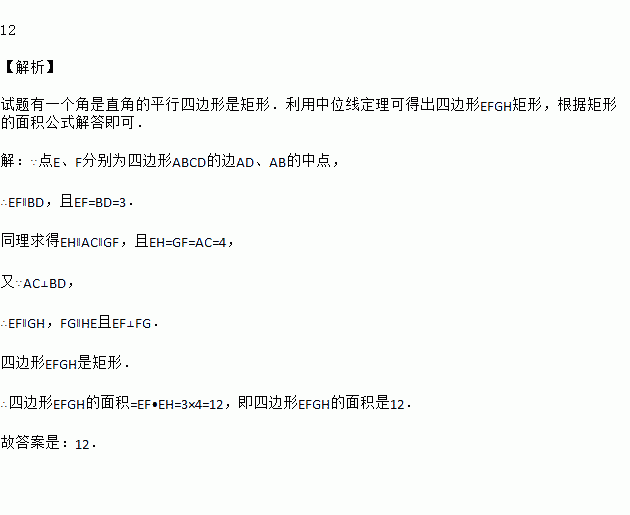 如图所示,在四边形ABCD中,对角线AC⊥BD,垂足为O,点E,F,G,H分别为边AD,AB,BC,CD的中点.若AC=8,BD=6,则四边形EFGH的面积为____.