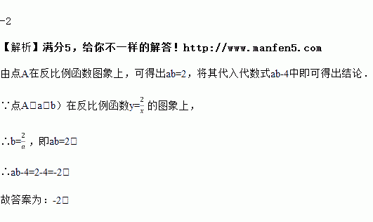 若点A(a,b)在反比例函数y=的图象上,则代数式ab﹣4的值为_____.