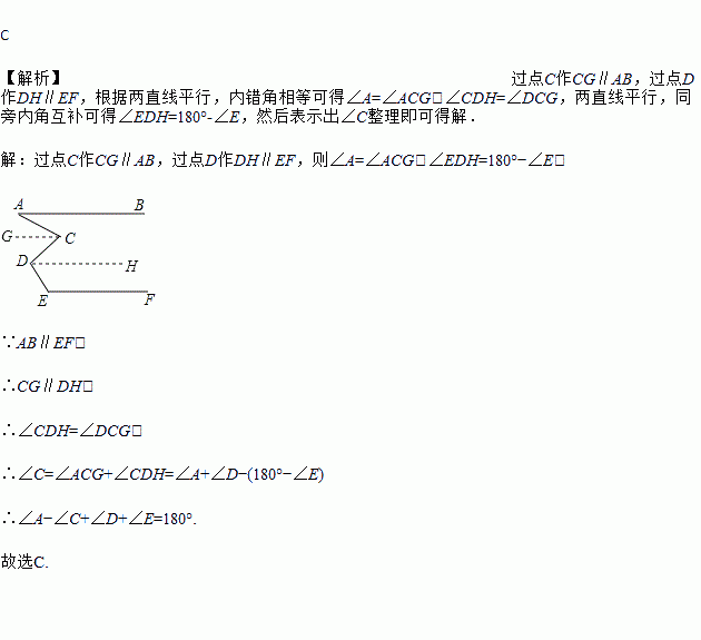 如图,AB∥EF,则∠A、∠C、∠D、∠E满足的数量关系是( )