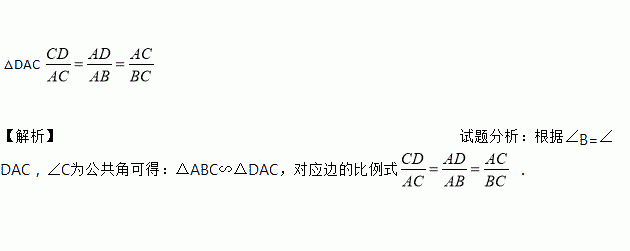 如图,若∠B=∠DAC,则△ABC∽_______,对应边的比例式是___________.