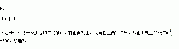小张抛一枚质地均匀的硬币,出现正面朝上的可能性是( )