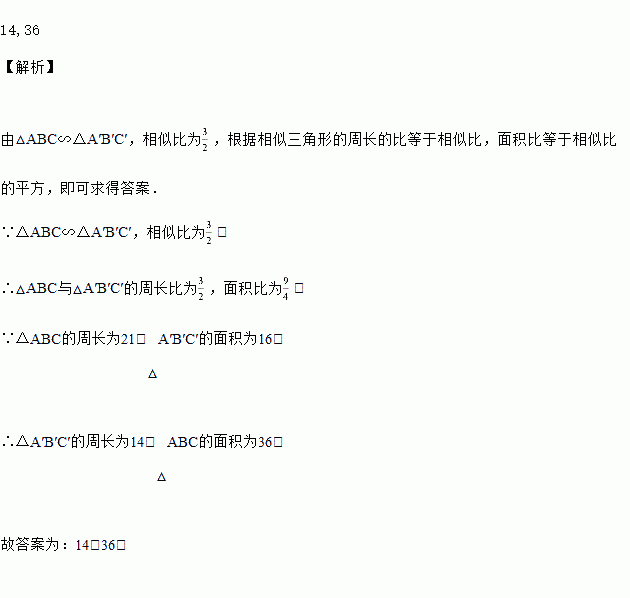 若,相似比为,且的周长为,的面积为,则的周长为________,的面积为________.