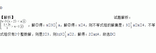 已知不等式组仅有2个整数解,那么a的取值范围是( )