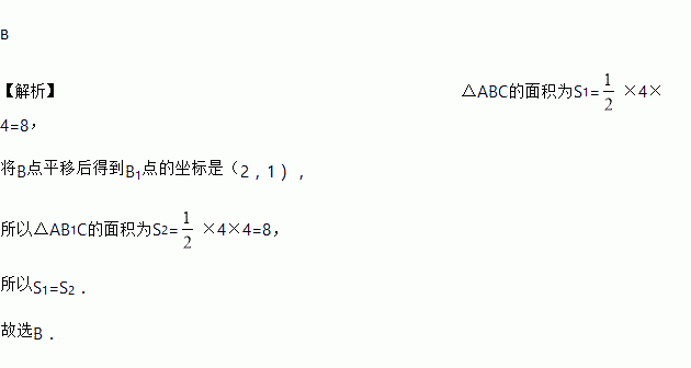 已知:如图△ABC的顶点坐标分别为A(﹣4,﹣3),B(0,﹣3),C(﹣2,1),如将B点向右平移2个单位后再向上平移4个单位到达B1点,若设△ABC的面积为S1,△AB1C的面积为S2,则S1,S2的大小关系为( )