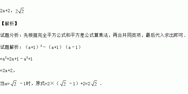 先化简,再求值:(a+1)2﹣(a+1)(a﹣1),其中,a=﹣1.