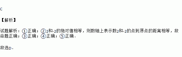 ②数轴上表示数2和﹣2的点到原点的距离相等;