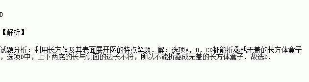 下列四个平面图形中,不能折叠成无盖的长方体盒子的是( )