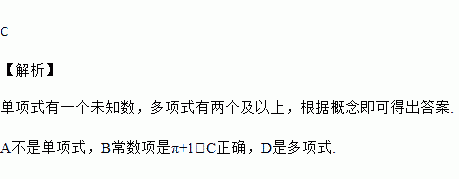 A. 单项式﹣π的系数是﹣1 B. x2+xy+π+1的常数项是1