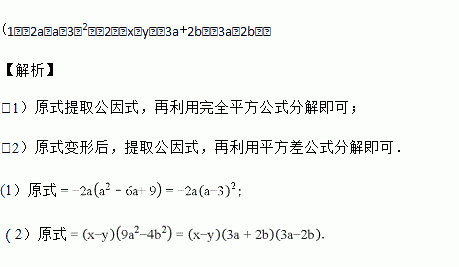 (1)﹣2a3+12a2﹣18a (2)9a2(x﹣y)+4b2(y﹣x)