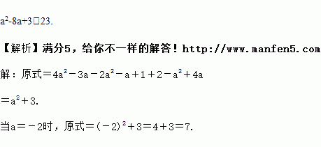 先化简再求值:(4a2-3a)-(2a2+a-1)+(2-a2-4a),其中a=-2.