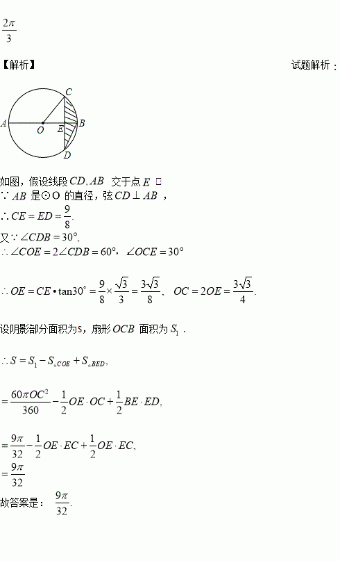 如图,AB是⊙O的直径,弦CD⊥AB,∠CDB=30°,CD=2,则阴影部分图形的面积为_____________