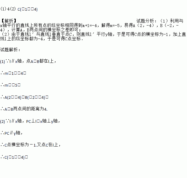 在平面直角坐标系中,点A(2,m+1)和点B(m+3,-4)都在直线l上,且直线l∥x轴.