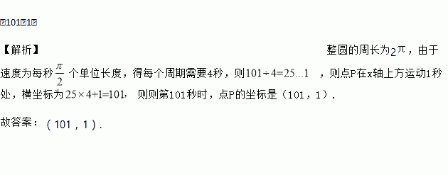 如图,在平面直角坐标系中,半径均为1个单位长度的半圆O1, 半圆O2, 半圆O3, …,组成一条平滑的曲线,点P从原点O出发,沿这条曲线向右运动,速度为每秒