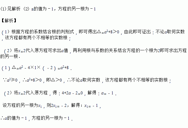 (1)求证:不论a取何实数,该方程都有两个不相等的实数根;