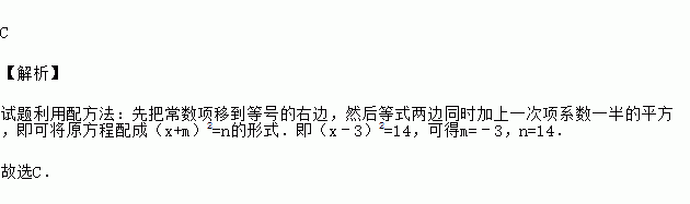 将方程x2﹣6x﹣5=0化为(x+m)2=n的形式,则m,n的值分别是( )