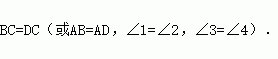 如图,△ABC与△ADC中,∠B=∠D=90°,要使△ABC≌△ADC,还需添加的一个条件是________ (写出一个即可).