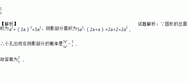 如图,是由边长分别为2a和a的两个正方形组成,闭上眼睛,用针随意扎这个图形,针尖出现在阴影部分的概率是__________.