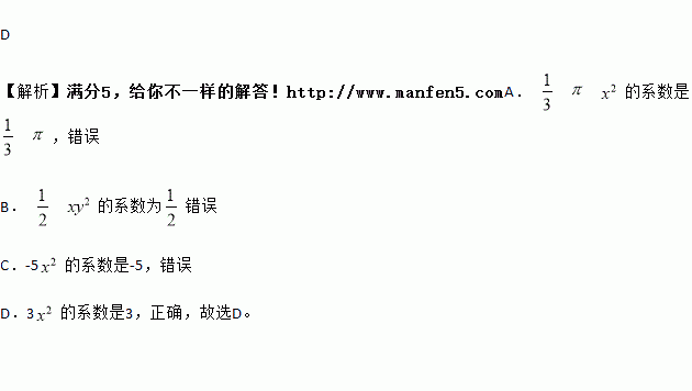 C. ﹣5x2的系数是5 D. 3x2的系数是3