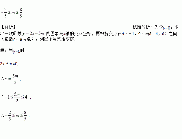 已知一次函数的图象与x轴的交点在A(-1,0)与B(4,0)之间(包括A、B两点),求m的取值范围.