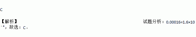 A. 1.6×104 B. 0.16×10﹣3 C. 1.6×10﹣4 D. 16×10﹣5