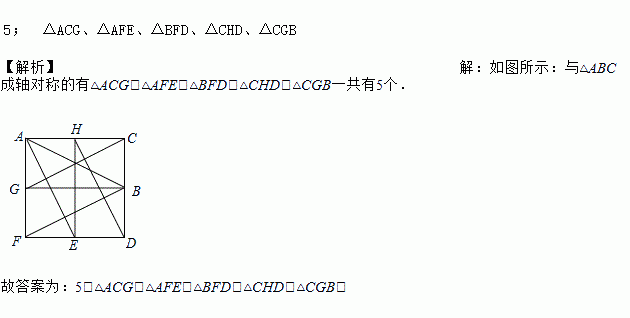 如图,有一个以格点为顶点的△ABC,请你找出格纸中所有与△ABC成轴对称且也以格点为顶点的三角形,这样的三角形共有________个,它们分别是________.