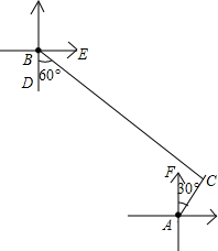 解:由方向角的概念可知:∠DBE=60°,∠CAF=30°,