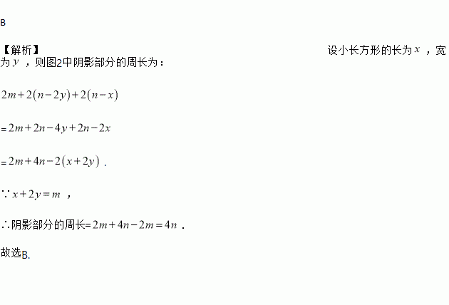 )的盒子底部(如图②),盒子底部未被卡片覆盖的部分用阴影表示.则图②中两块阴影部分的周长和是( )