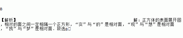 一个正方体的平面展开图如图,每一个面都有一个汉字,则在该正方体中和“实”字相对的汉字是( )