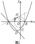 £¨2£©ÏÔÈ»£¬ÐýתºóµÄÖ±ÏßÉÏʹµÃ¡ÏMEB=90¡ãºÍ¡ÏEBM=90¡ãµÄµãM¸÷ÓÐÒ»¸ö£¬ÒªÊ¹Âú×ãÌõ¼þµÄµãMÓÐÇÒÖ»ÓÐÈý¸ö£¬Ö»ÐèÐýתºóµÄÖ±ÏßÉÏʹµÃ¡ÏEMB=90¡ãµÄµãMÖ»ÓÐÒ»¸ö£¬ÓÉÓÚµãMÔÚÒÔBEΪֱ¾¶µÄ¡ÑOÉÏ£¬Òò´ËÐýתºóµÄÖ±ÏßÓë¡ÑOÖ»ÓÐÒ»¸ö½»µã£¬¼´¸ÃÖ±ÏßÓë¡ÑOÏàÇÐÓÚM£¬ÔòOM¡ÍAM£¬Èçͼ1¡¢Í¼2£¬Ö»ÐèÀûÓÃÈý½Çº¯ÊýÇó³ö¡ÏOAM£¬¾Í¿É½â¾öÎÊÌ⣻