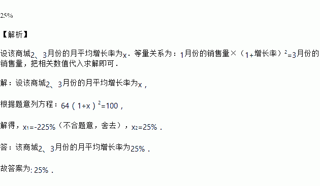 月份自行车销量的月平均增长率相同,求该商城![]()