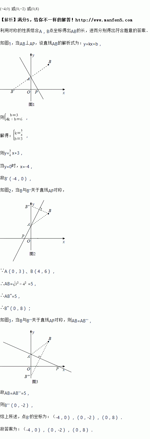 如图,点,的坐标分别为,,点是轴上的一个动点,若点关于直线的对称点恰好落在坐标轴上,则点的坐标为_______.