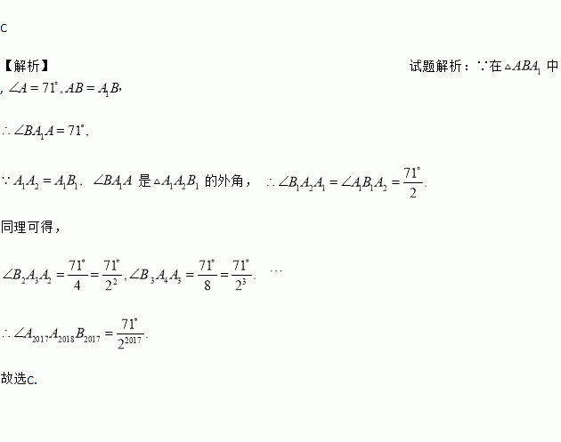 如图,已知AB=A1B,A1B1=A1A2,A2B2=A2A3,A3B3=A3A4…,若∠A=70°,则∠An﹣1AnBn﹣1(n>2)的度数为( )