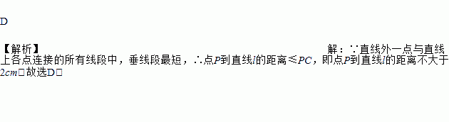 点P为直线ι外一点,点A、B、C为直线ι上三点,PA =4cm,PB=5cm,PC=2cm,则点P到直线ι的距离为( )