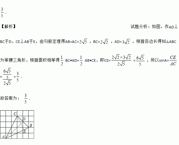 网格中的每个小正方形的边长都是1,△ABC每个顶点都在网格的交点处,则sinA= .