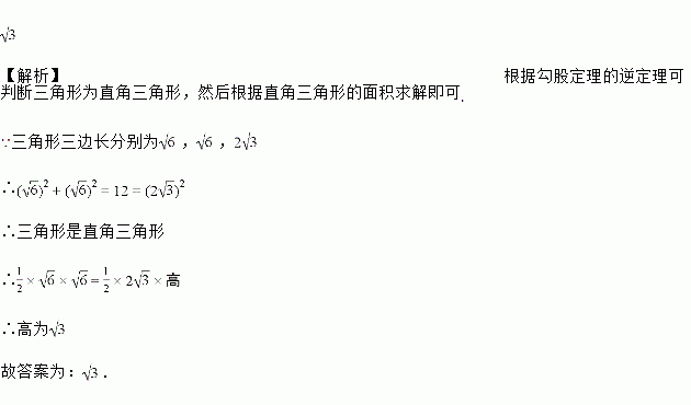 己知三角形三边长分别为,,,则此三角形的最大边上的高等于_____________.