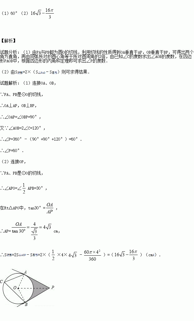 如图,PA,PB分别与⊙O相切于A,B两点,∠ACB=60°.