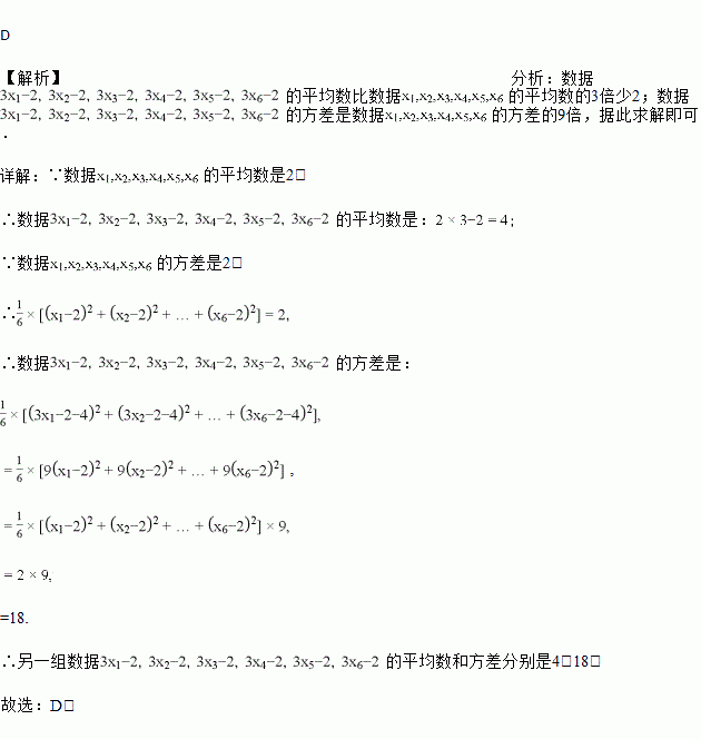 若一组数据x1,x2,x3,x4,x5,x6的平均数是2,方差是2,则另一组数据3x1﹣2,3x2﹣2,3x3﹣2,3x4﹣2,3x5﹣2,3x6﹣2的平均数和方差分别是(  )