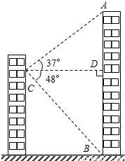 小明家所在居民楼的对面有一座大厦AB,AB=80米,为测量这座居民楼与大厦之间的距离,小明从自己家的窗户C处测得大厦顶部A的仰角为37°,大厦底部B的俯角为48°.求小明家所在居民楼与大厦的距离CD的长度.(结果保留整数)(参考数据: