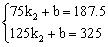 ∴线段AB的解析式为:(75<x≤125)。